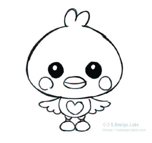 3.すると、頭の輪郭とトサカがひとつながりの線になる。