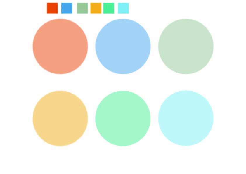 1つを選択する。すると、四角形の色が正円1つの色に置き換わるので、この