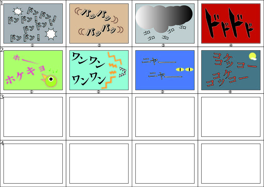 また、今回は、操作手順の他に、オノマトペの種類等も勉強がてら書いてみる。