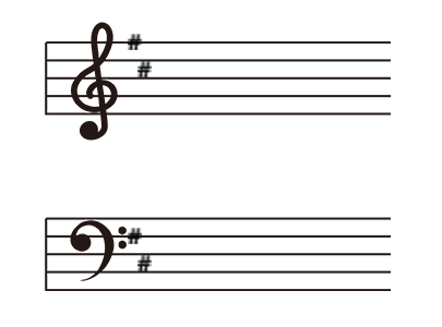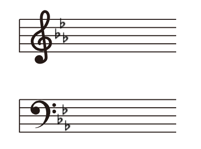 調号:ト音記号・ヘ音記号の横に#・♭は付かない。