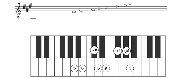 音階:ラから始まるドレミ(#音階なので、上昇ルートで表してみる)。