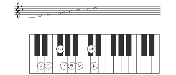 音階:レから始まるドレミ(#音階なので、上昇ルートで表してみる)。