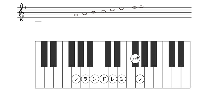 音階:ソから始まるドレミ(#音階なので、上昇ルートで表す)。