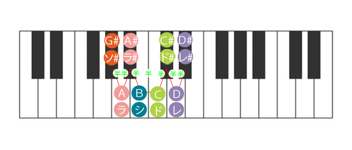 注)鍵盤はマイナーコードを省略して記述しているので、マイナーコードを付加して読み上げる事