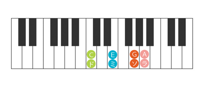 C6:長三和音(メジャー トライアド)に長6度の音を加えた和音。