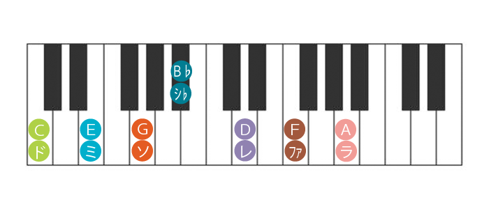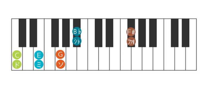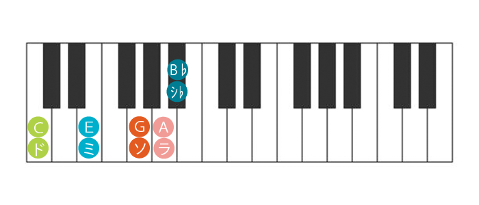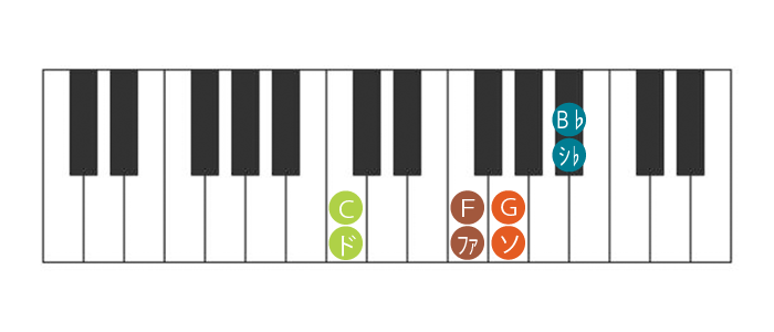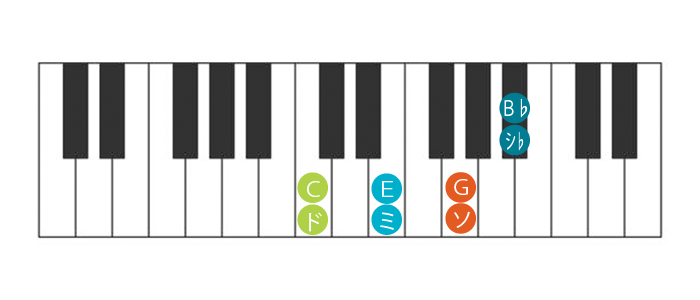 C7:長三和音(メジャー トライアド)に短7度の音を加えた和音。