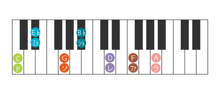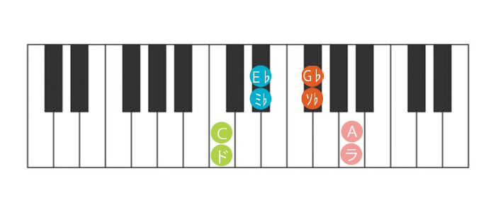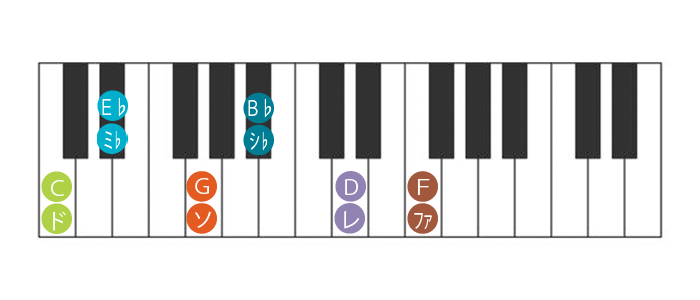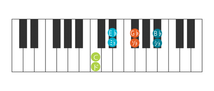 Cm7-5:短七の和音(マイナー セブンス)の完全5度を半音下げて、減5度にした和音。