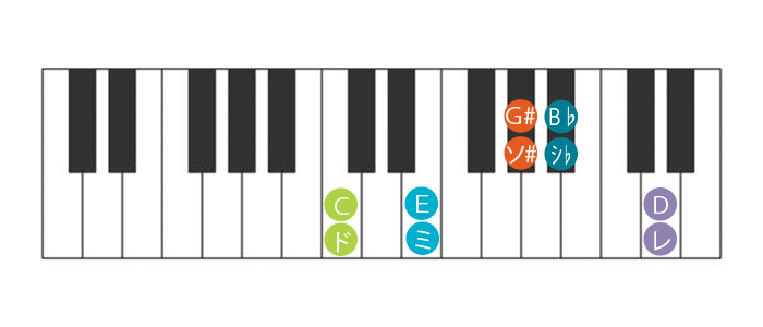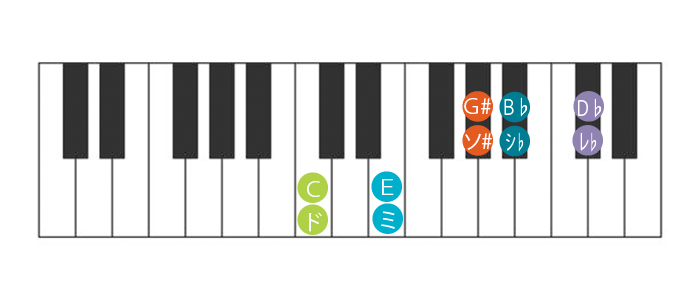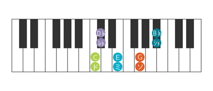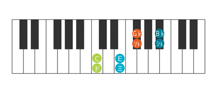 C7-5:属七の和音(ドミナント セブンス)の完全5度を半音下げ、減5度にした和音。