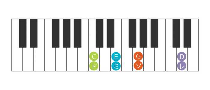 Cadd9:長三和音(メジャー トライアド)に長9度の音を加えた和音。