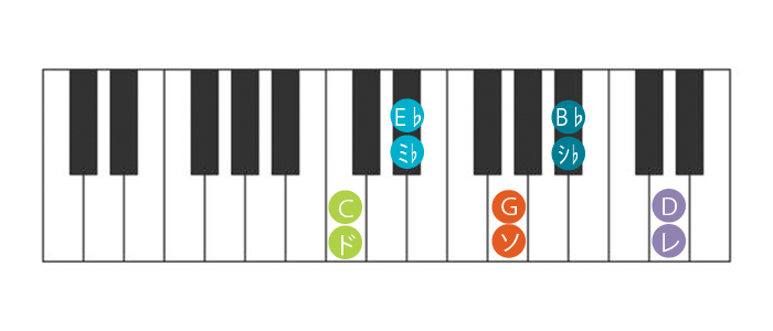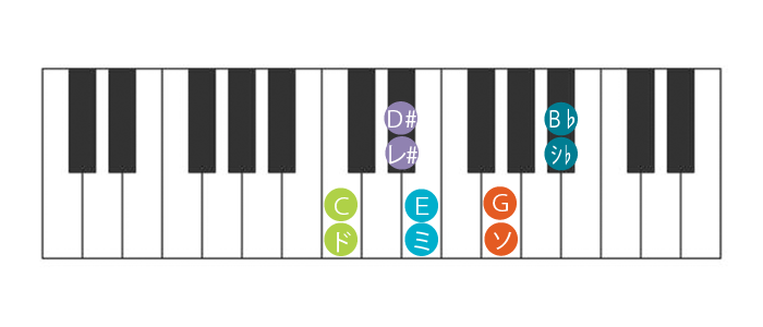 Cm7:短三和音(マイナー トライアド)に短7度の音を加えた和音。