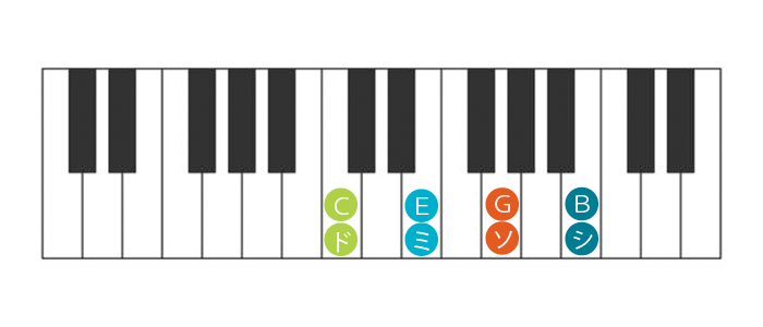 CM7:長三和音(メジャー トライアド)に長7度の音を加えた和音。