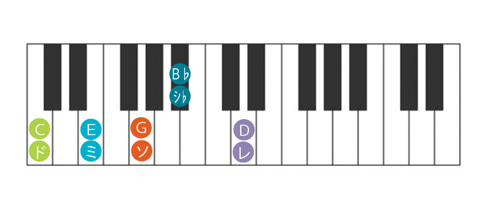 三和音のメジャーコードに短7度(m7)の音が重なった四和音のコード。