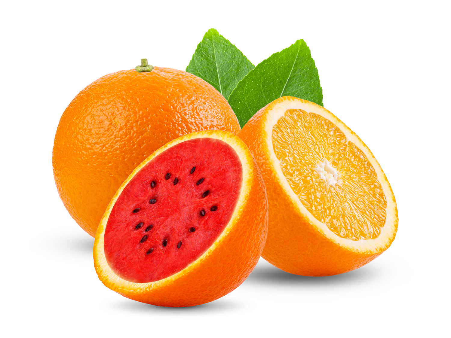 3.上記操作を駆使しながら、オレンジの内側にスイカの実を被せる。