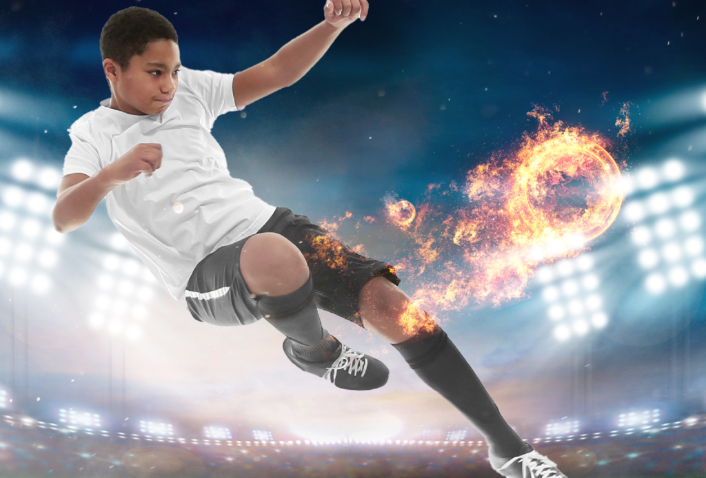 サッカー風景に星空のような点が追加される。これで描画モードの合成が完成。