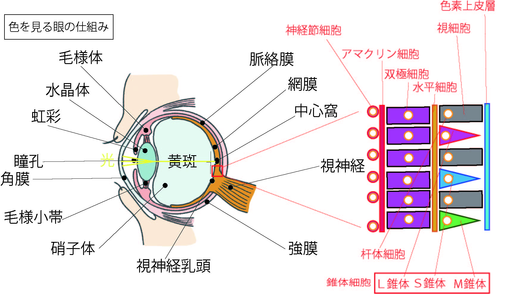 病気中だったので、色彩検定の勉強が出来なかった。急いで問題集の眼の仕組みをイラレで作成してみました。