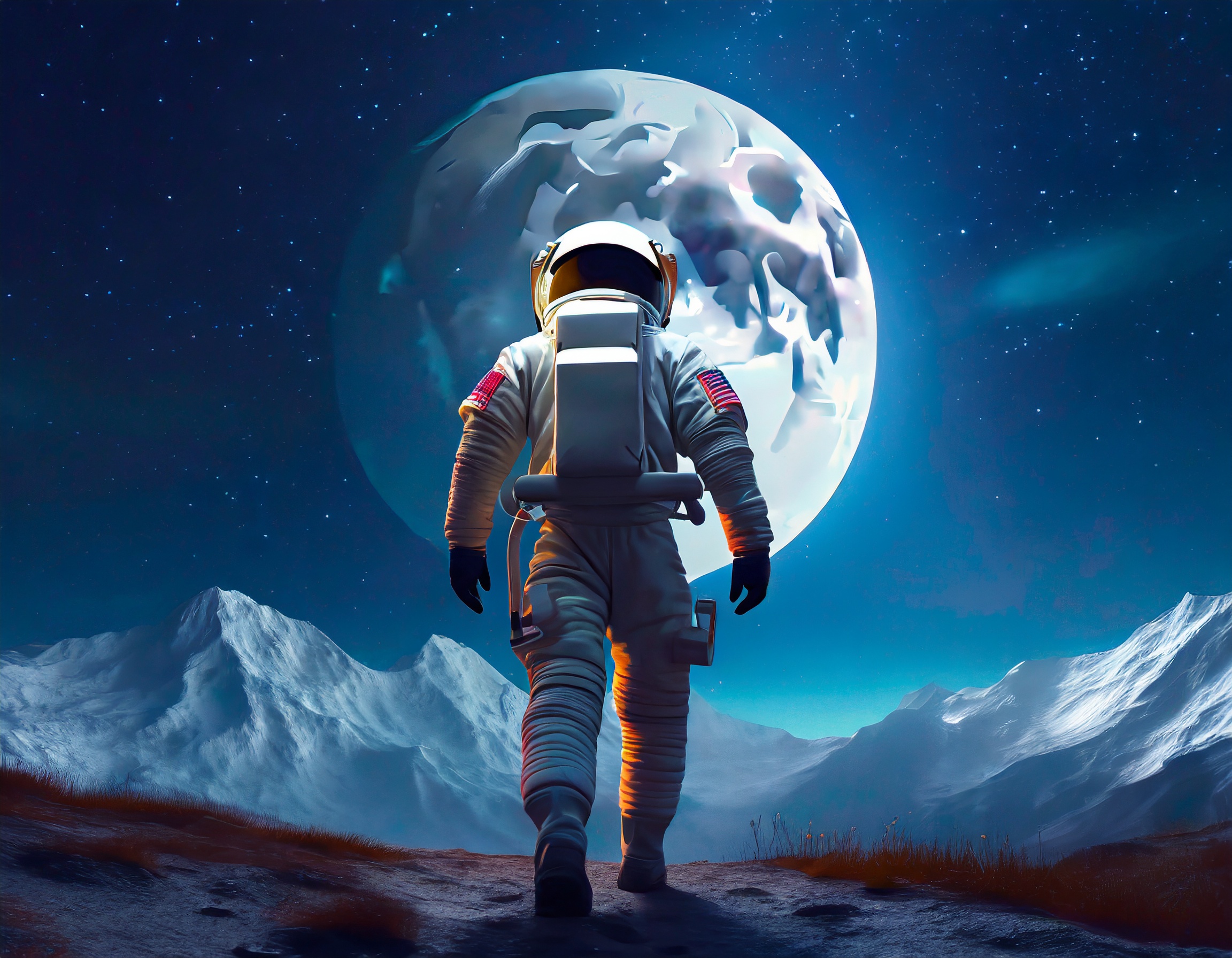 プロンプト:月を眺める宇宙服を着た人